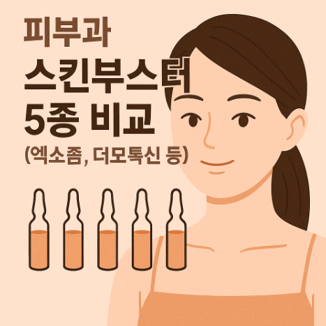 피부의 근본적인 개선을 추구하는 40~50대 여성 사이에서 스킨부스터 시술이 인기를 끌고 있습니다. 스킨부스터란 피부 속에 유효성분을 주입하여 탄력, 수분, 피부결, 톤 개선을 돕는 주사치료로, 장비 시술과 병행 시 더욱 시너지 효과를 발휘합니다. 본 글에서는 피부과에서 가장 많이 활용되는 엑소좀, 더모톡신, 리쥬란, 샤넬주사, 히알루론산 수분주사의 특징과 적응증을 비교해 안내합니다.