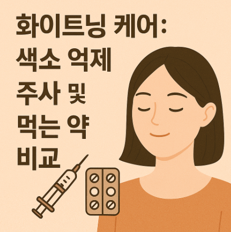 화이트닝 케어는 단기간의 집중 치료와 장기적인 색소 억제를 동시에 고려해야 합니다. 주사치료는 즉각적인 효과를 얻기에 적합하며, 경구 미백제는 지속적인 색소 형성 억제 및 항산화 유지에 효과적입니다.